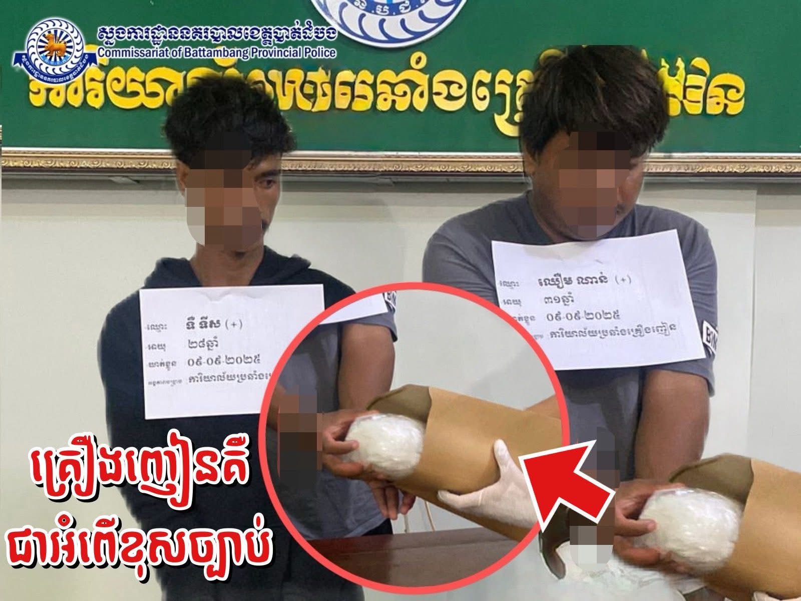 គ្រឿងញៀនទម្ងន់ 1061,04ក្រាមត្រូវបានសមត្ថកិច្ចនគរបាលបង្រ្កាបដកហូតនៅស្រុកបវេលរួមជាមួយមុខសញ្ញាចំនួន០២នាក់៖-------នាវេលាម៉ោង២១និង១៥នាទីយប់ថ្ងៃទី ០៩ខែ កញ្ញា ឆ្នាំ២០២៥ អនុវត្តតាមអនុសាសន៍ដ៏ខ្ពង់ខ្ពស់របស់ឯកឧត្តម នាយឧត្តមសេនីយ៍ ស ថេត អគ្គស្នងការនគរបាលជាតិ និងការចង្អុលដឹកនាំរបស់លោកឧត្តមសេនីយ៍ទោ ដាញ់ អេងប៊ុនចាន់ ស្នងការនគរបាលខេត្តបាត់ដំបង លោកវរសេនីយ៍ឯក សុខ និមល ស្នងការរងទទួលផែនប្រឆាំងគ្រឿងញៀន ដឹកនាំធ្វើការបង្រ្កាបករណីរក្សាទុក ជួញដូរ ឬដឹកជញ្ជូន ដោយខុស ច្បាប់នូវសារធាតុញៀនមួយករណីក្នុងបទល្មើសជាក់ស្តែងនិងឃ-ាត់ខ្លួ-នមុខសញ្ញាចំ នួន០២នាក់ នៅភូមរាមសេនាឃុំល្វា ស្រុកបវេល ខេត្តបាត់ដំបង។ សមត្ថកិច្ចដកហូតបាន៖-ថ្នាំញៀនប្រភេទមេតំហ្វេតាមីន ម៉ាទឹកកក ICE ចំនួនដុំធំ និង០១ថង់មាន ទម្ងន់ ១០៦១,០៤ក្រាម(ទាំងសំបកថង់)-រថយន្តចំនួន០១គ្រឿង-ទូរស័ព្ទដៃចំនួន ០១គ្រឿង-ថង់ប្លាស្ទិចតូចៗពណ៌សមួយចំនួននិងដបសម្រាប់ជក់គ្រឿងញៀនមួយចំនួន។ ពេលនេះជនសង័្សយនិងវត្ថុតាងសមត្ថកិច្ចរៀបចំបញ្ជូនទៅកាន់អយ្យការអមសាលាដំបូងខេត្តបាត់ដំបង ដើម្បីអនុវត្តតាមផ្លូវច្បាប់៕(រូបភាពផែនការងារគ្រឿងញឿន)